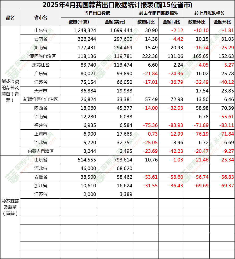 2025年4月蒜苔出口數(shù)據(jù)(按省市)