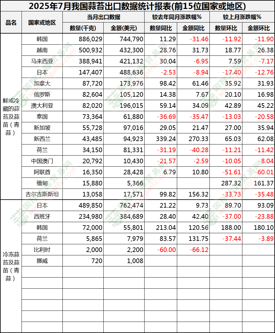 2025年7月蒜苔出口數(shù)據(jù)(按國家)