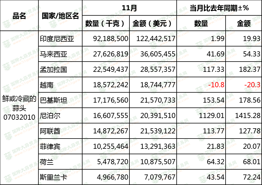 大蒜:11月份出口量創(chuàng)年內(nèi)新高