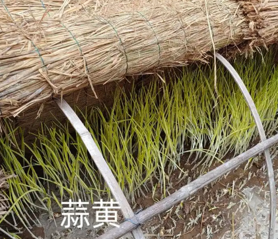 (八)遮光 軟化苗高17厘米澆大水后,即應遮光進行黃化,除蓋上草苫外,還常用黑色塑料薄膜覆蓋畦面,以減弱陽光對葉片的綠化,促使蒜苗柔嫩,提高產品品質。