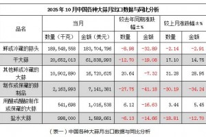 2025年10月洋蔥出口數(shù)據(jù)(按總量)